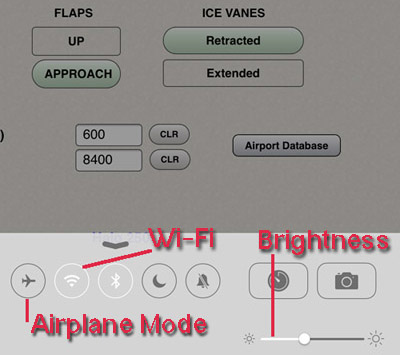 Screen Brightness, Wi-Fi connection, Airplane Mode